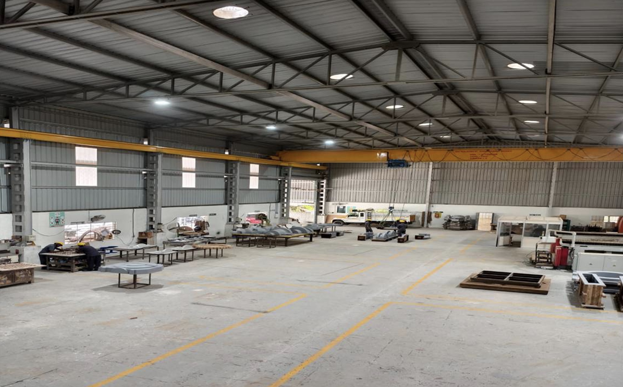 Over 18,000 sq.ft (930 sq.m) of workspace with overhead crane facility, VMC machines, and precision instruments